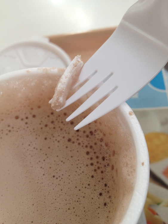 | 機場勿當奴早餐 價錢與市區無分別 朱古力附送發泡膠 但這杯是完好無缺的哦 |