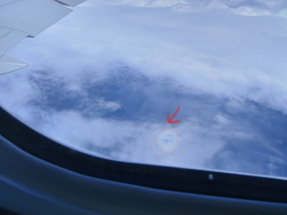 | 一個科學問題 為什麼有彩虹圈包圍飛機的影? |