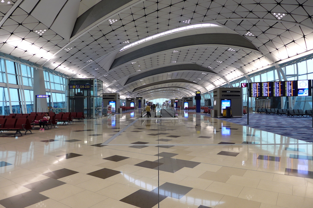 | 坐上機場旅客捷運系統,第一次踏上中場客運廊 |