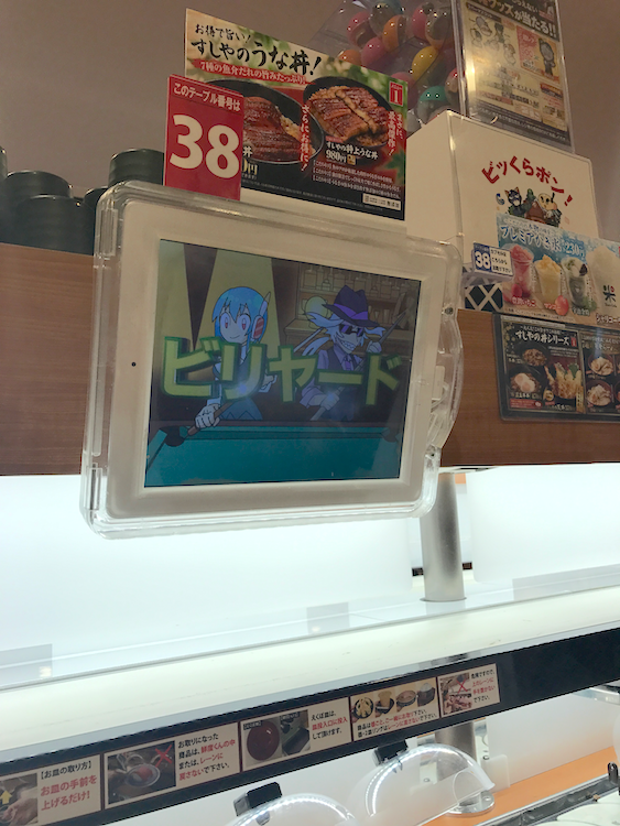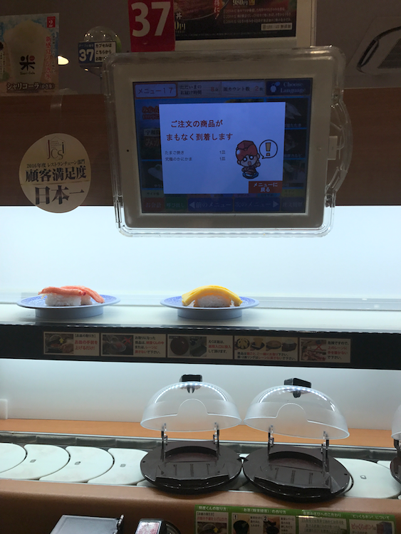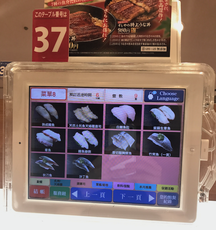 | 上輸送帶是用 iPad 點餐後,運到你眼前 下輸送帶是迴轉壽司 |