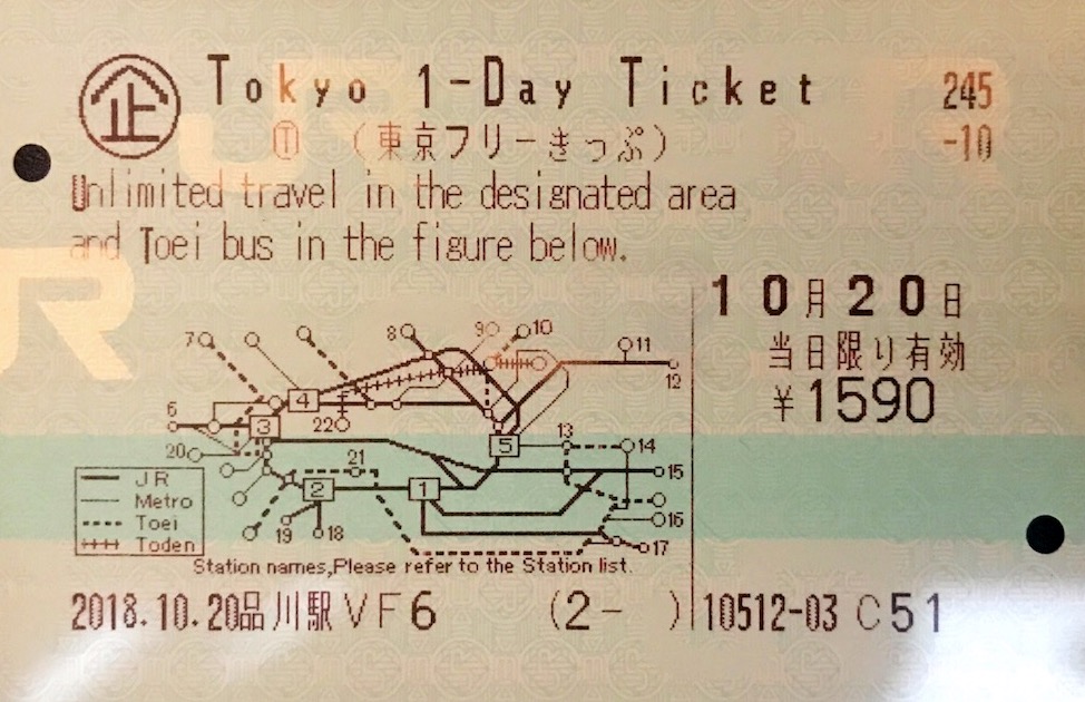 | 在品川駅買 1590 日元的 Tokyo 1-Day Ticket |